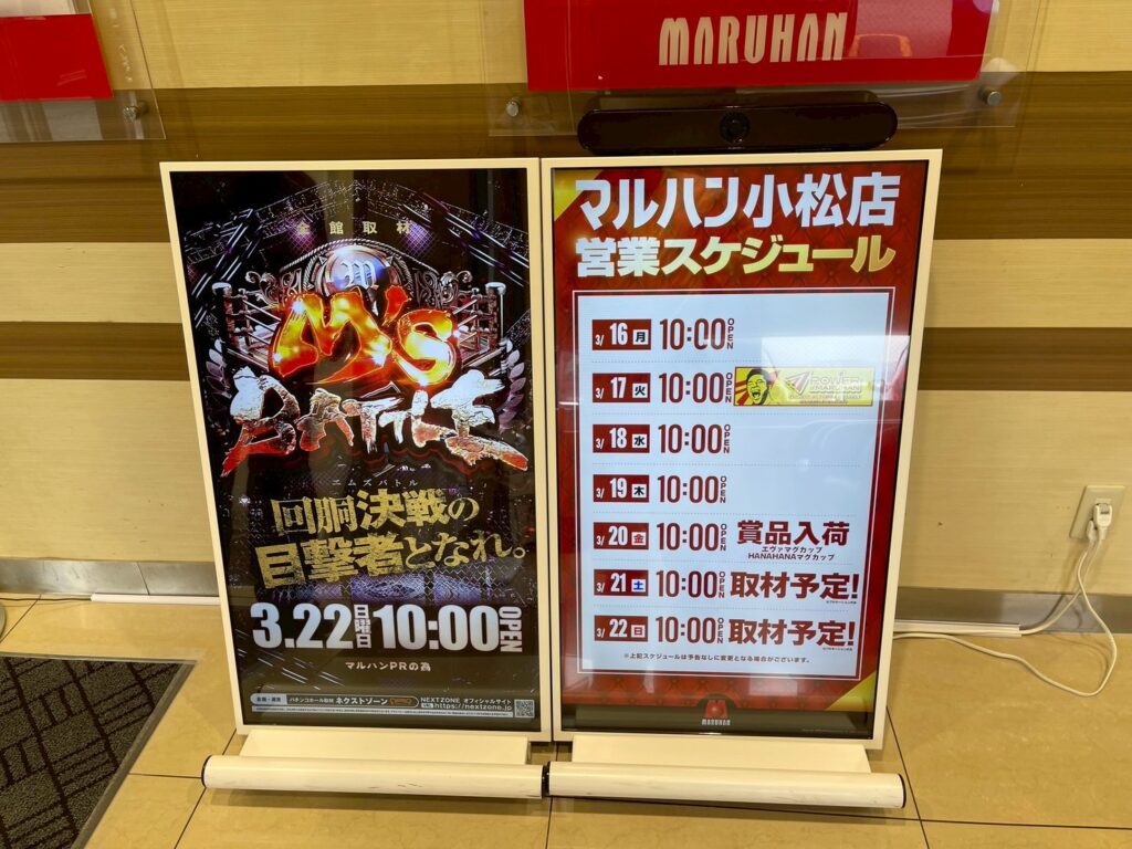 2026年3月22日(日)、マルハン小松店にて取材を進める中、撮影しました光景をご覧ください